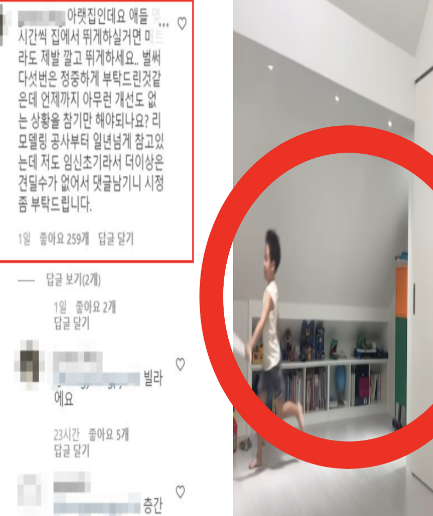 이휘재는 층간소음으로 큰 논란을 빚었는데 더욱 문제가 된 것은 아랫집 주민의 댓글 때문이다. 아랫집 주민은 다섯번이나 정중하게 부탁드렸는데 전혀 개선이 되지 않아 스트레스가 머리 끝까지 차오른 상황이라고 한다. 이휘재는 집 안에서 아들과 야구를 하는 등 야외에서 할만한 활동을 주로 해왔던 것으로 알려졌다.